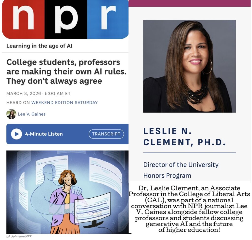 MY OPINIONS ON AI & HIGHER ED ON NPR (March 3, 2026): I am excited to share that I was part of a national conversation with NPR journalist Lee Gaines and fellow college professors and students discussing the evolving role of artificial intelligence in higher education. As the Honors Director at Johnson C. Smith University and a humanities scholar working at the intersection of AI, ethics and the African Diaspora, I was grateful for the opportunity to elevate the voice of HBCUs in national conversations about pedagogy, equity and technology. Read the full story here: https://www.npr.org/2026/03/03/nx-s1-5716176/ai-college-students-professors